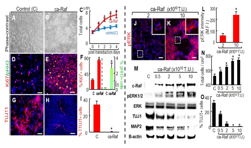 Figure1: 高密度NSC中Raf-Erk信号激活诱导细胞增值并抑制神经元分化